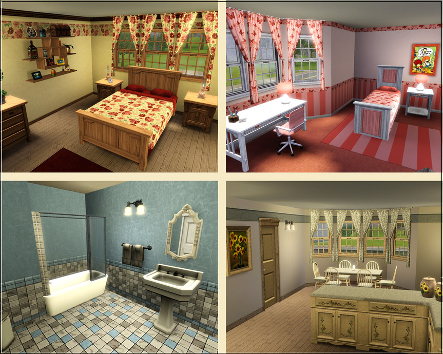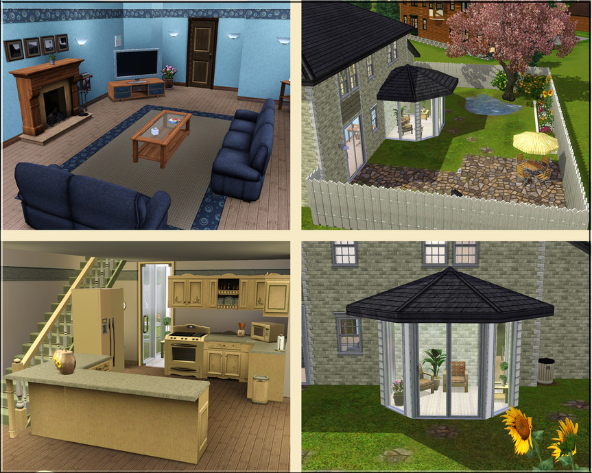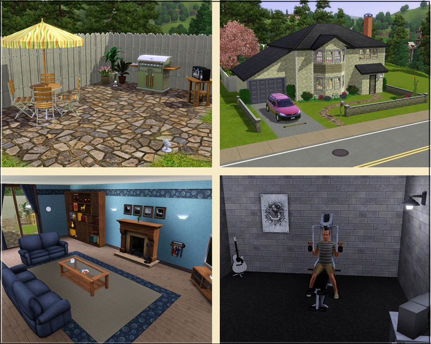 This English family home has two bedrooms, two bathrooms, living room, kitchen, small work-out garage and a little conservatory. There are nice gardens to the front and rear which include parking space, a small pond and a bbq area. No custom content or store items used and the Lot has been fully tested.