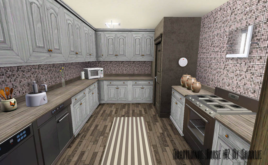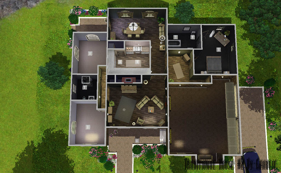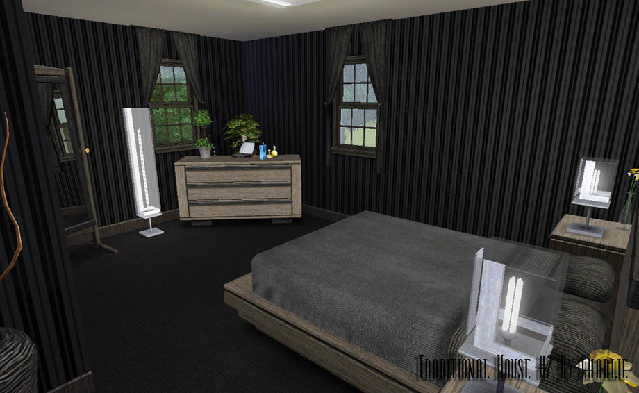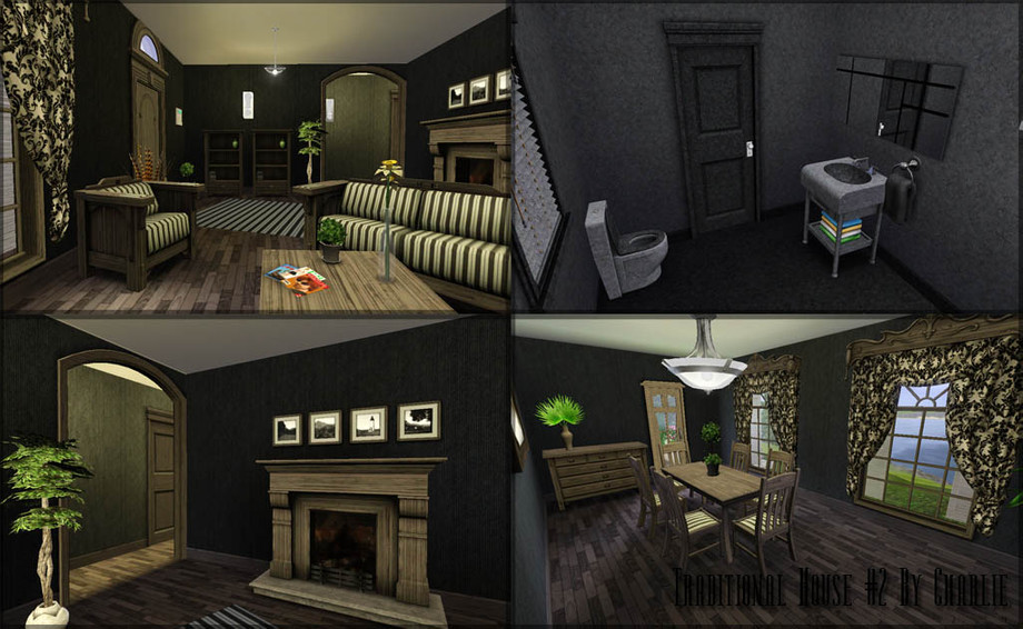 Another traditional house :) This time smaller. There are 3 bedrooms (2 unfurnished), 2 bathrooms, kitchen, livingroom, diningroom, garage (with 2 parking place and 1 outside). All house is in dark colors. Enjoy ! :)