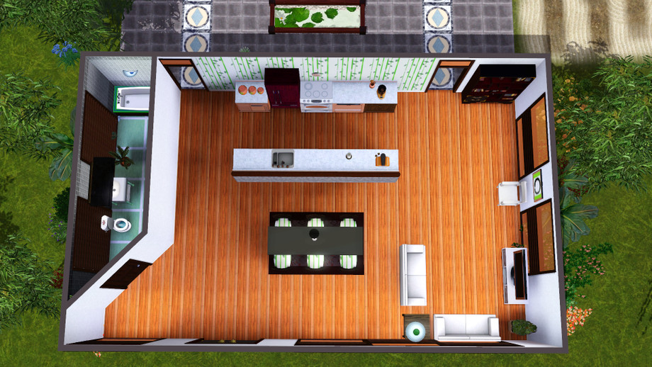 If your sim is an aspiring zen master, then this house is perfect! Experience nature in the courtyard/garden area or practice sculpting in your own private studio. There are also treasures displayed and a few sculpures for inspiration, all for a very affordable price!