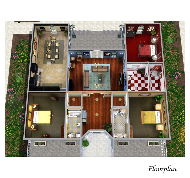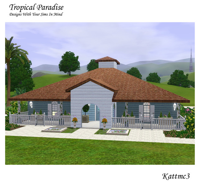This three bedroom, two bathroom home is perfect for the sim who dreams of the beaches and sun of those tropical hideways. The home includes a pool and stuning gardens.The sims who live here will never want to leave. Enjoy Kattmc3