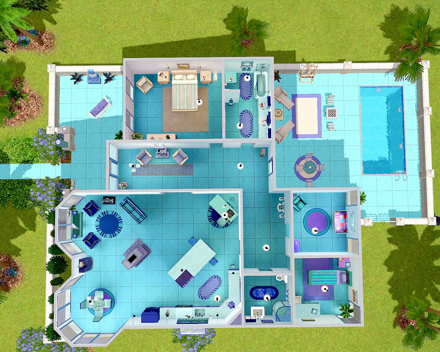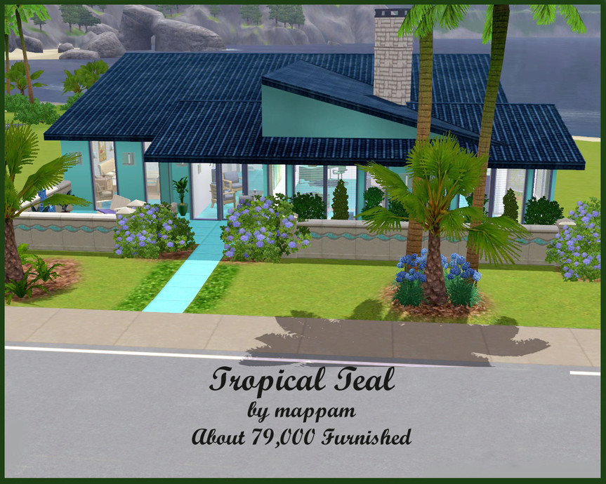 Feel the island breeze with this contempory home. Perfect size for a young family with 3 bedrooms and 2 full baths. Open concept kitchen/living area and 2 patio areas to enjoy the wonderful Sim weather or sit by the pool! 30x30 lot. Price subject to change depending on lot - About 79,000 furnished and decorated. Oh - you kinda havta like Teal...