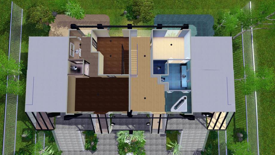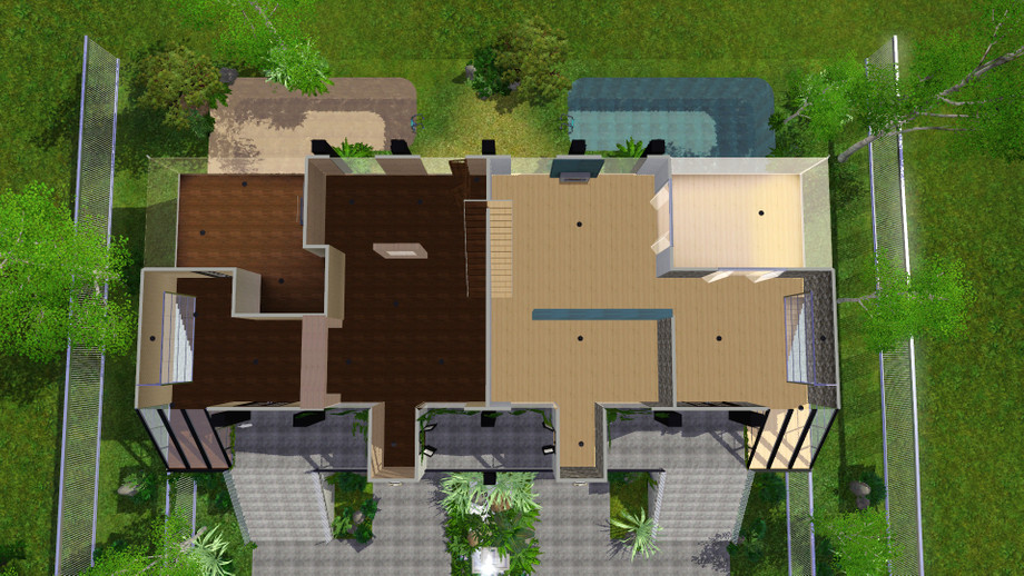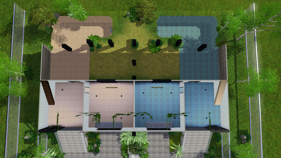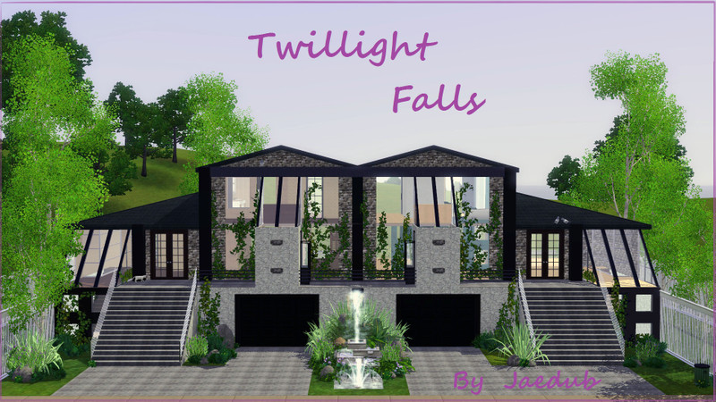 Twillight Falls.This is a gorgeous town house with 2 suites.Both suits are pretty much the same but each one having a slightly different floor plan.Both has 2 stories,1 bathroom and 1 bedroom,although there is room for more bedrooms if desired.Featuring 2 attached garages which take up the main floor,2 pools,one for each side,sun rooms,fire places and tons of room to change this and that,the out side if fully landscaped but I left the rest of the house unfurnished,there is alot of different ways to set up and decorate this house,so have fun and i hope you all enjoy!