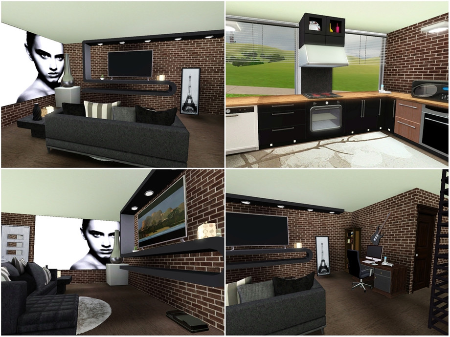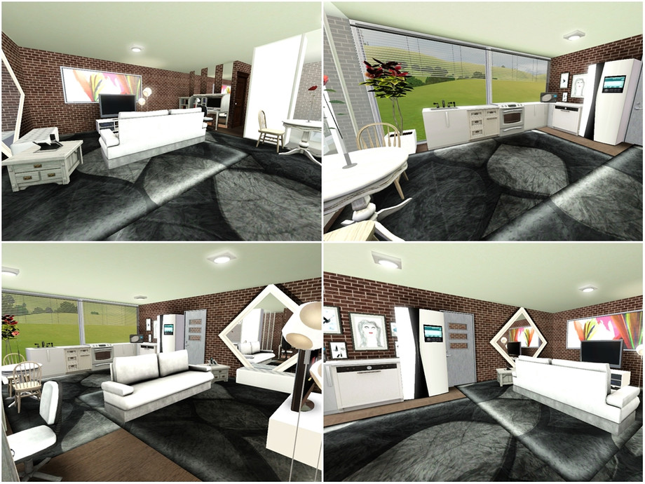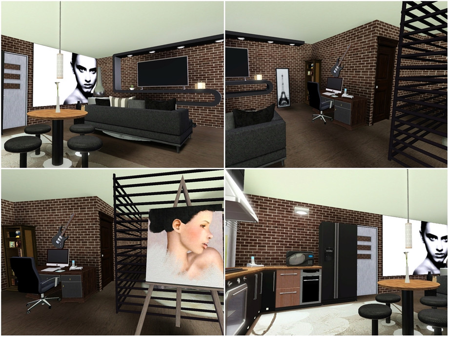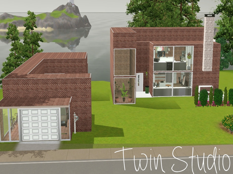 An urban block of two studio flats, with an art studio outside next to the garage - perfect for arty sim(s)!