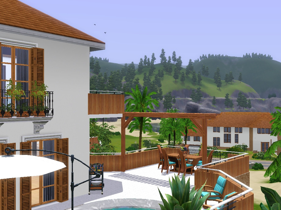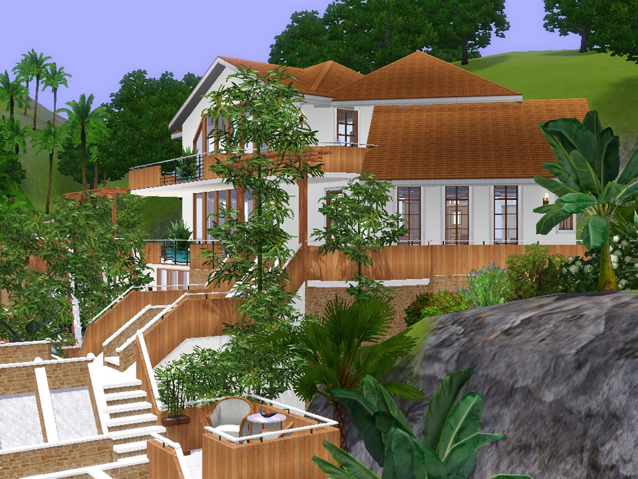 I used furnitures from Ambitions, World Adventures,Pets,Outdoor Living and Master Suite. This lot is built on a hilly ground, if you place it on a flat ground it wont look at its best.