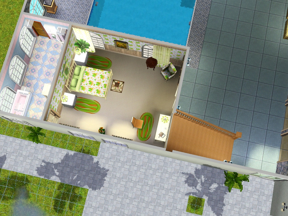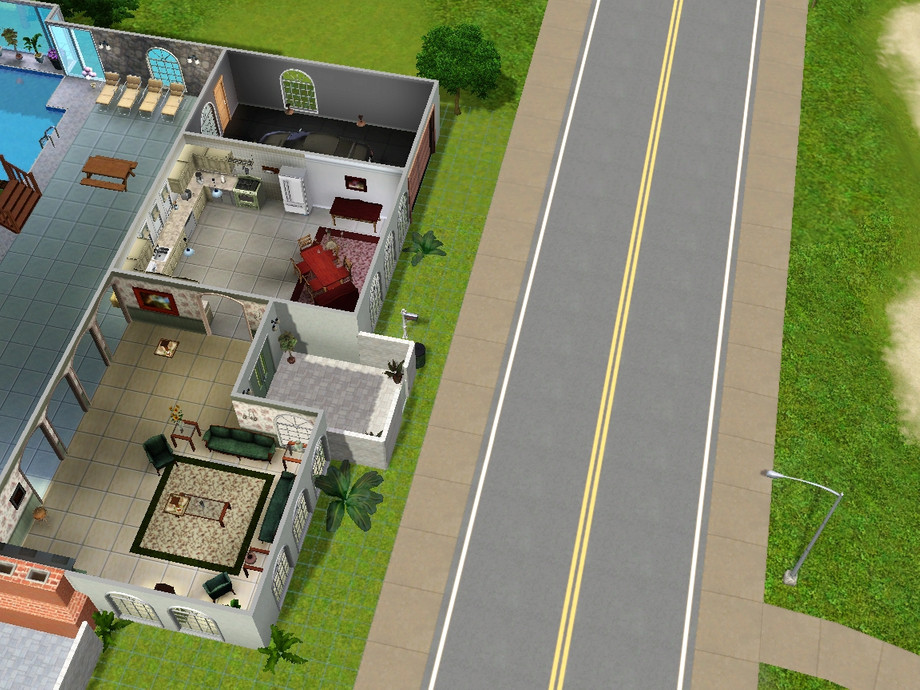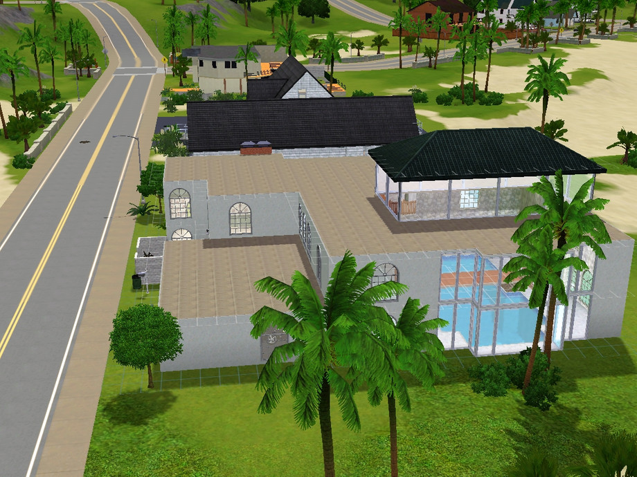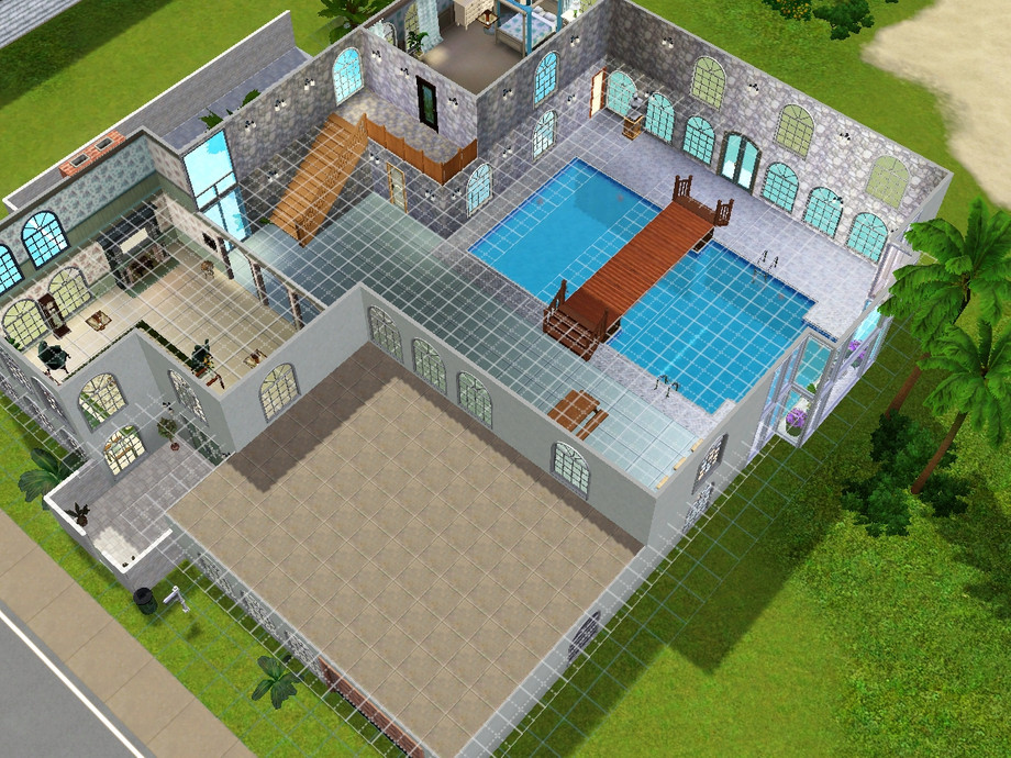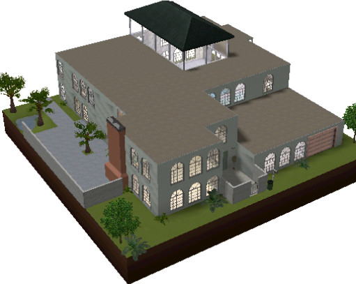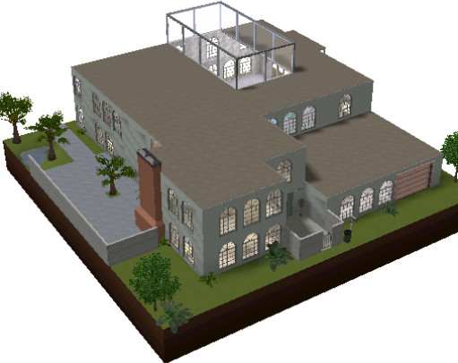 One of my first designs, its a modern loft type home with 2 bedrooms and one bathroom. It has an indoor pool with a bridge over it. The kitchen and dining room is open plan. The Lounge has a cosy fireplace