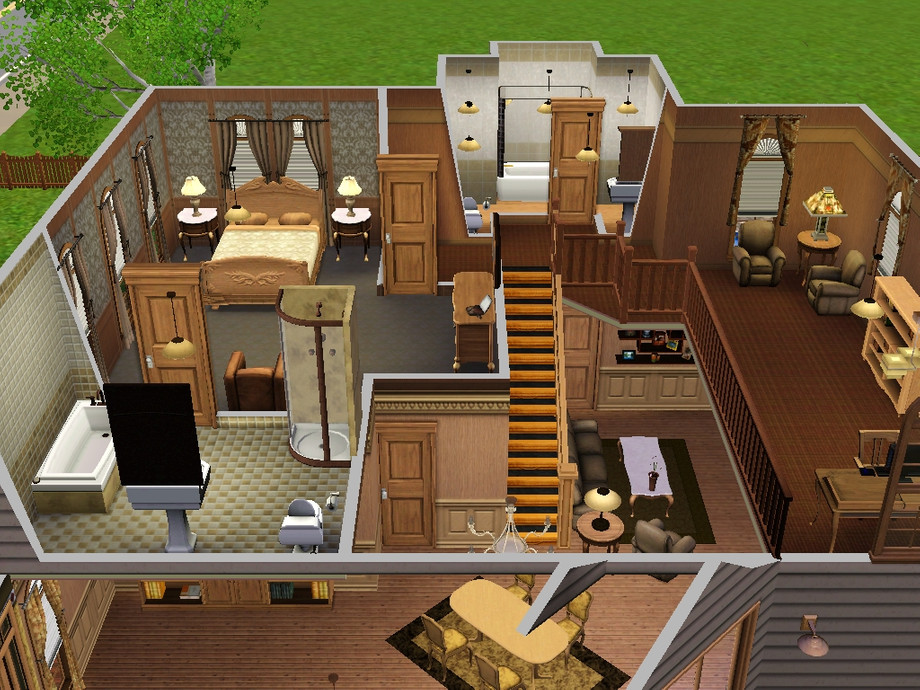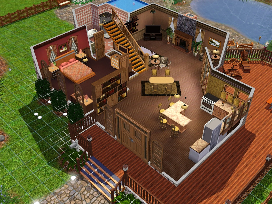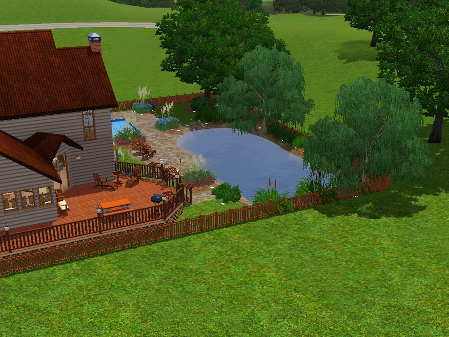 A two ensuite bedroom house for your vacationing Sims. There is a pond and swimming pool. The house comes completely furnished, inside and out, so all your Sims need to do is move in and enjoy.