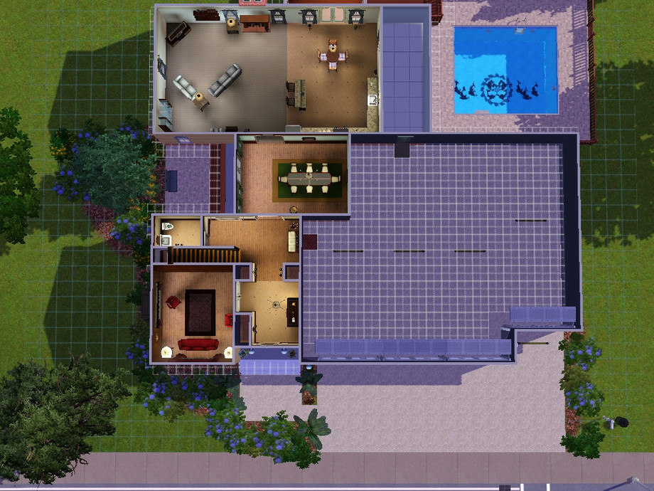 What could you possibly ever need to leave the house for with this home? Featuring everything you would ever need, this 4 bedroom 2.5 bath home is an excellent choice for your well off sims. Home features 4 car garage, den, family room, formal dining room, eat in Kitchen, sunroom, rec room, master suite, three aditional bedrooms (one of which has been converted to an office in the furnished version), and so much more. Too many features to list!
