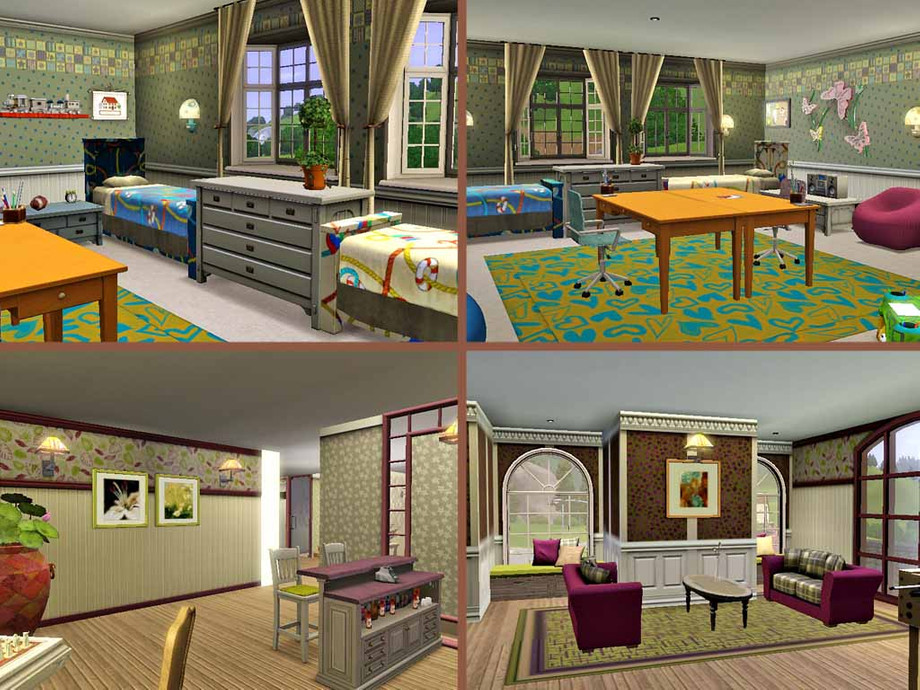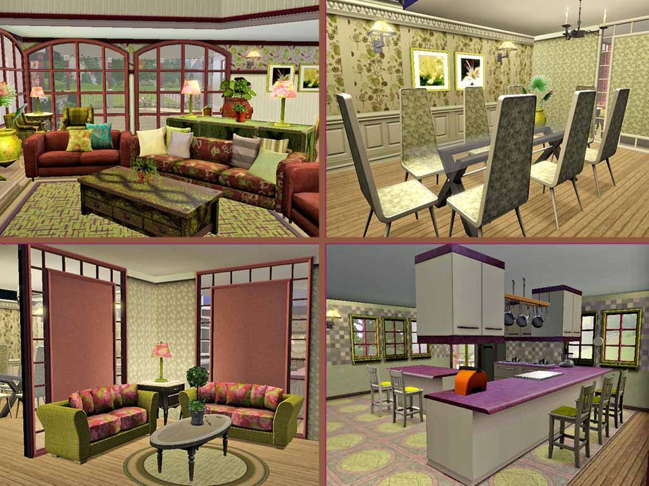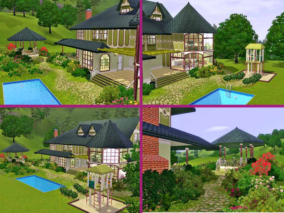When we built this Victorian House, functional requirements were first priority. The house was built in a bottom-up approach. The furniture were placed first, then the floor plan, the structure, and last the architecture. We hope it will be a good house for the sims to live. Furthermore, we'd like to make the house distinctive and glamorous. A non-main-stream colour scheme and style is used. We are pleased with the creation and we hope you'd like it too.