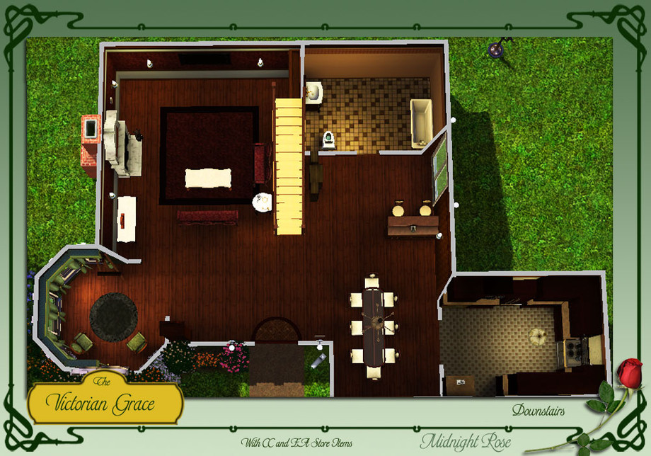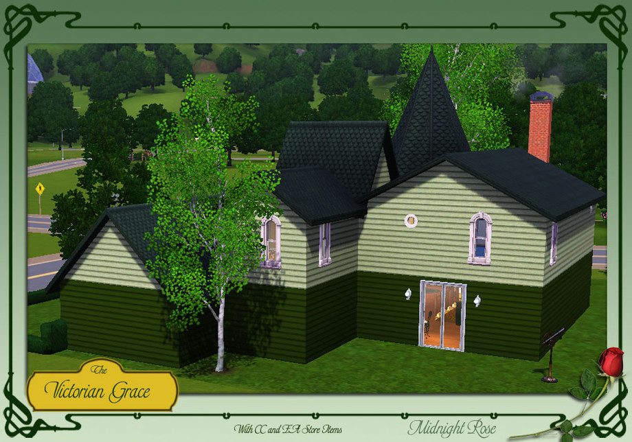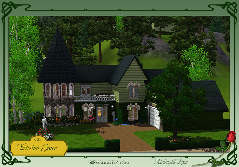 A graceful Victorian styled manor. Contains both FA CC from TSR and EA store items. This 3 BR 3 BA home is perfect for your Sim's who want a luxurious home with some old world elegance. Both the Master Bedroom and the Teens room have attached studies.