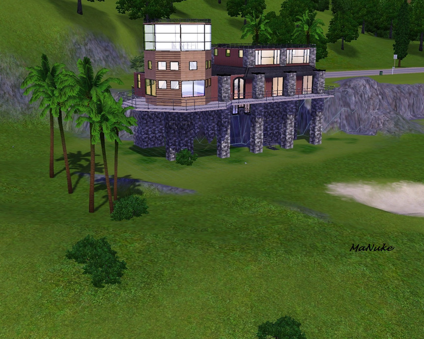 This dramatic Lodge has a bridge enterance and sunken garage. Supported on stone colums with a walk round balcony and glass view top tower it boosts 4 bedrooms, study and large open plan kitchen/living area. The guest bedrooms have a jack/jill bathroom and the upstairs master has onsuite. the Lodge looks best on 180 wright way where it comannds exquisite views of the bay