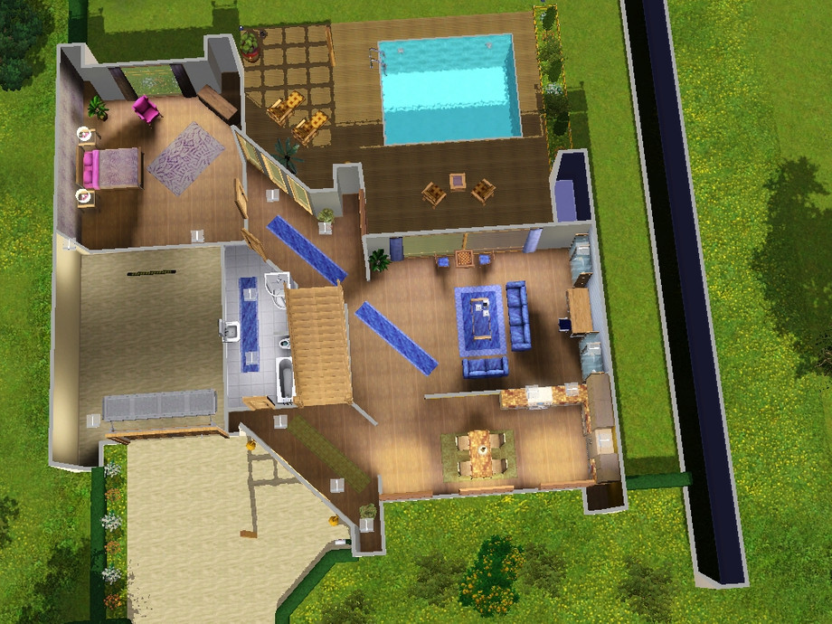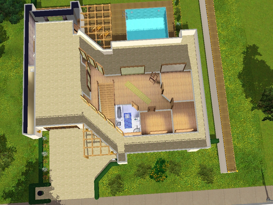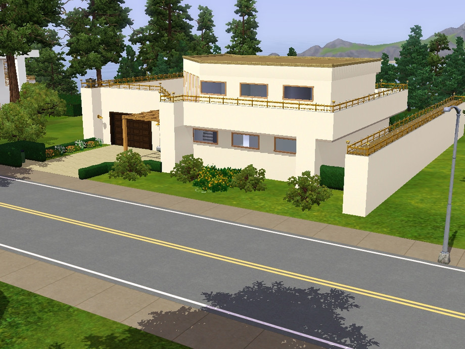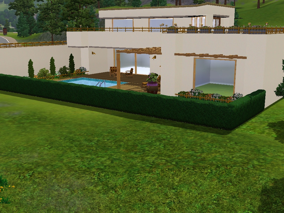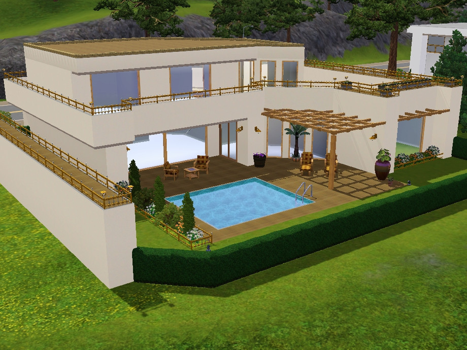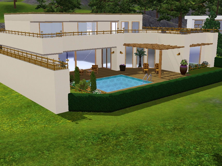 Yes, I like villa and I hope you too. Villa Moderna is waiting for an owner to live in. Nice individual home for your sims. 4 bedrooms, 2 bathrooms, kitchen with dinning-area, living-room, garden with pool, a wonderful balcony to enjoy the sunset and a garage. The house is partly furnished and decorated. Enjoy Special thanks to Hazuitokage for the curtains. Most of the patterns by me.