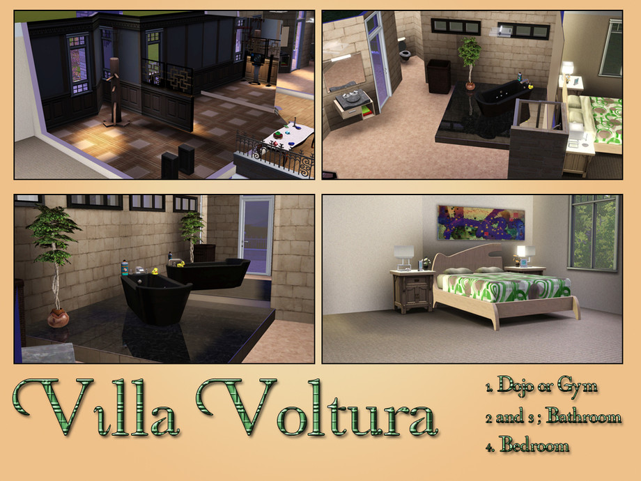 Beautiful Family villa. Has a very nice garden, Dojo, Kitchen, Livingroom, 1,5 bath and two bedrooms. Contains Lots of Relics from China and Egypt. Stacked bookcases with books from Egypt, France and China. Including all recepies from the 3 foreign countries. Made by Rhendera @ TSR, leave a comment if you like it!