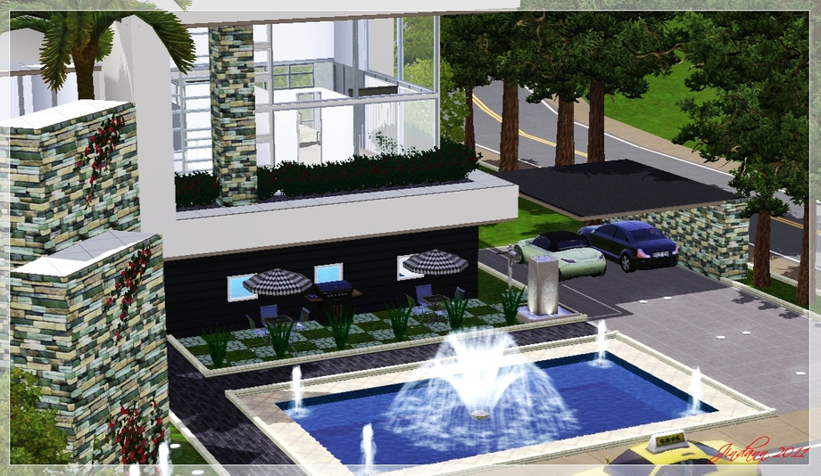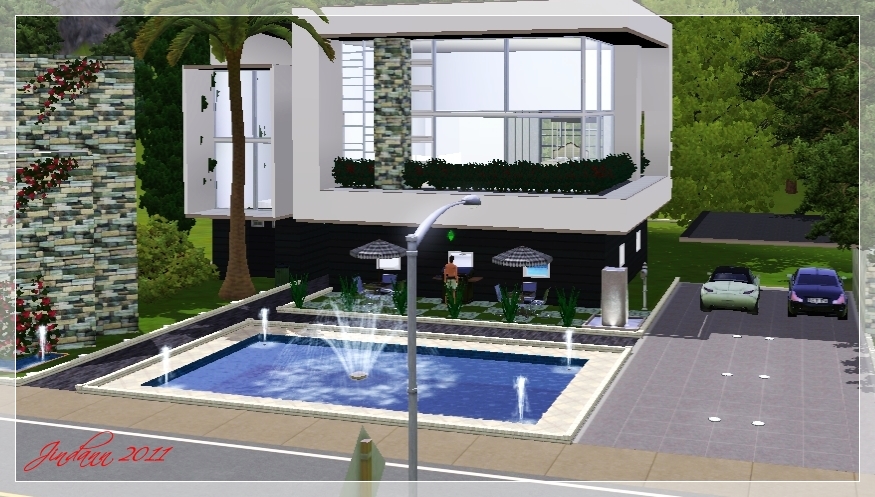 Modern living with only two floors but three lifestories. It has simple map, when you enter the living room you can see the kitchen and the pool. The bed room is on up floor. See the screenshot for clearly.