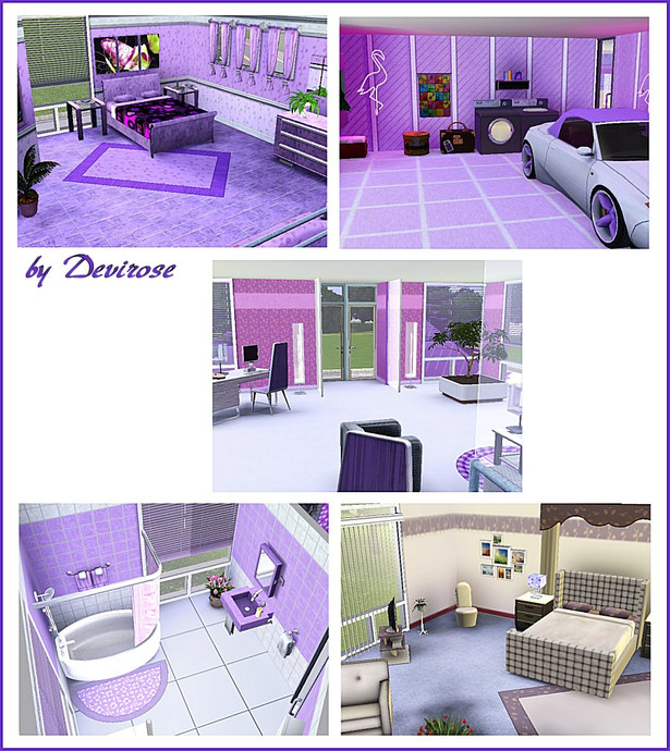 Modern house,in white and purple,3 floors.No doll.Enjoy^^