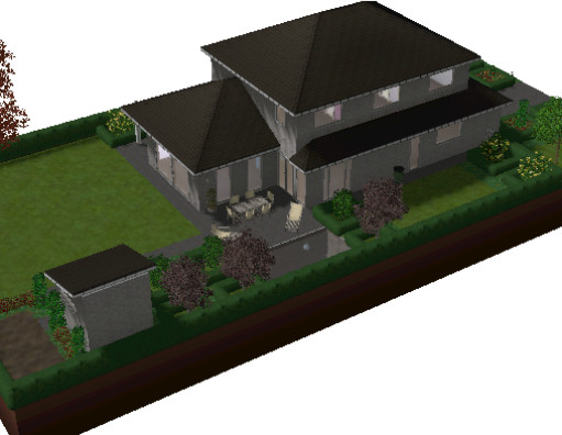 Modern family home with spacious garden, garage, storage room, kitchen and living and dining area on the ground floor. The first floor provides 3 bedrooms and a bathroom. The garden has a separate storage room and a pond.
