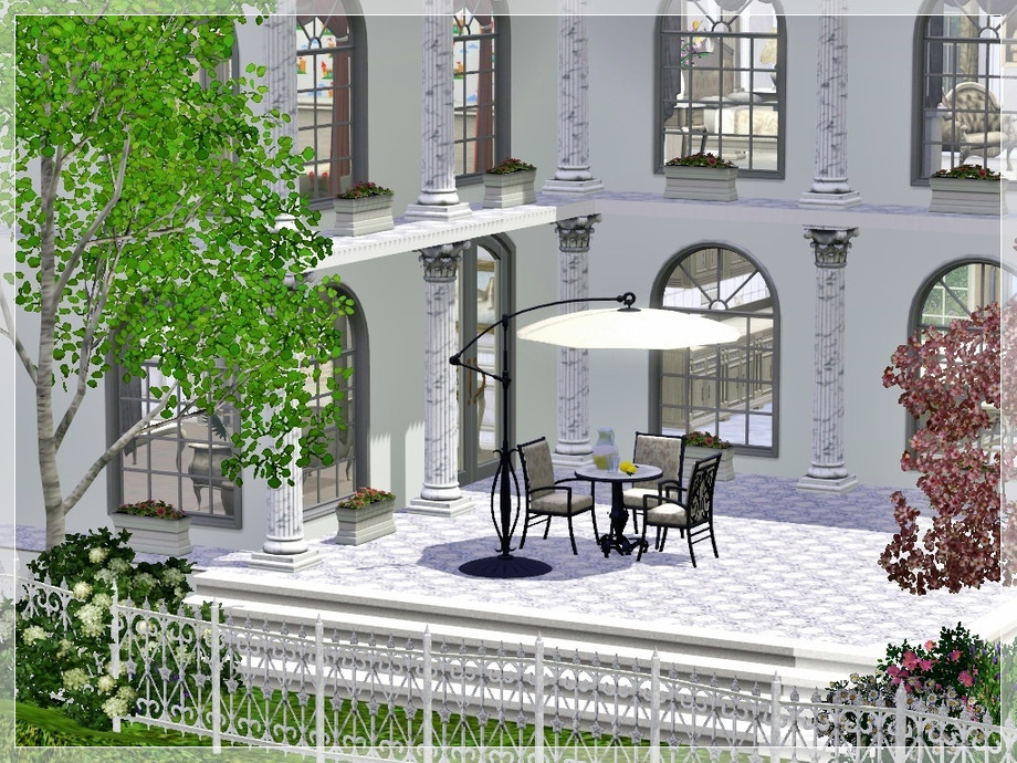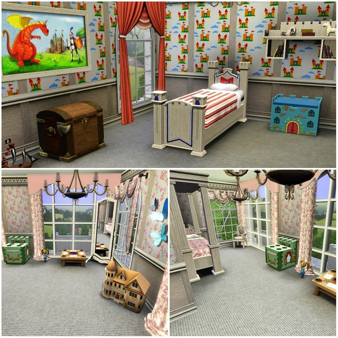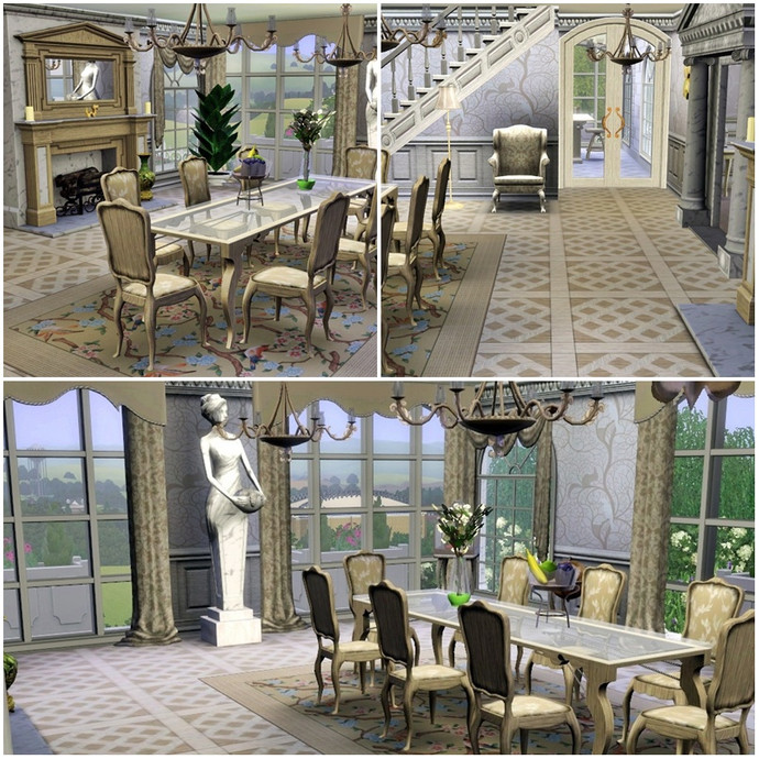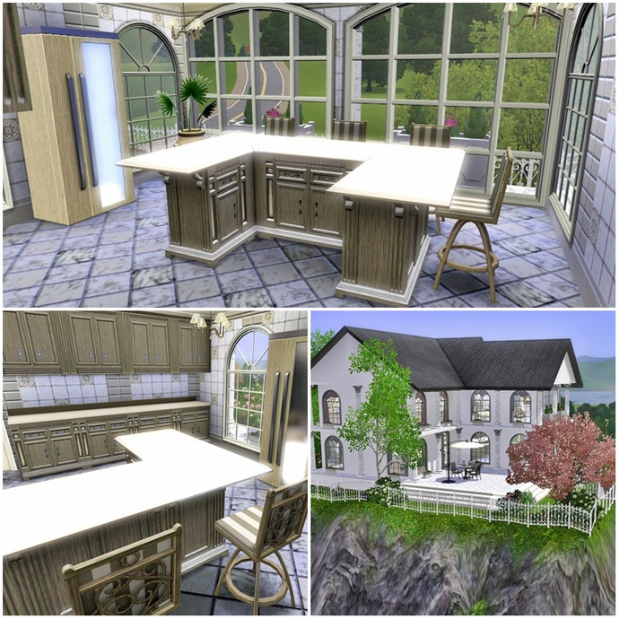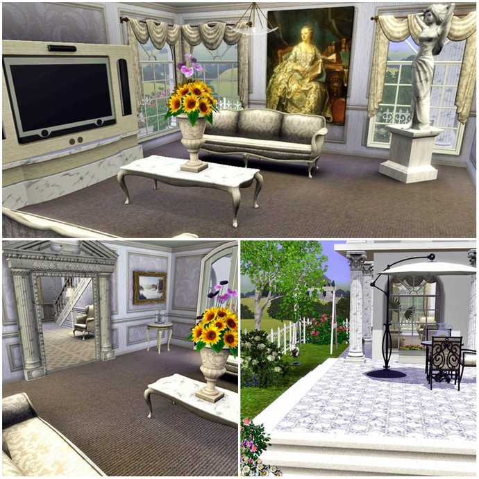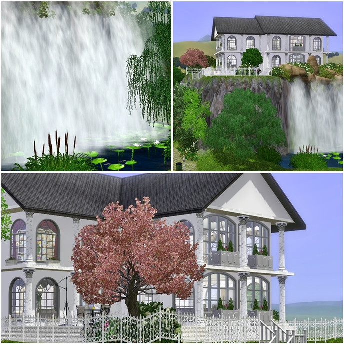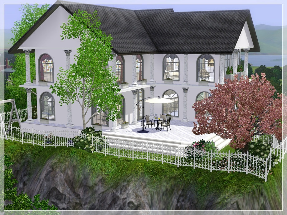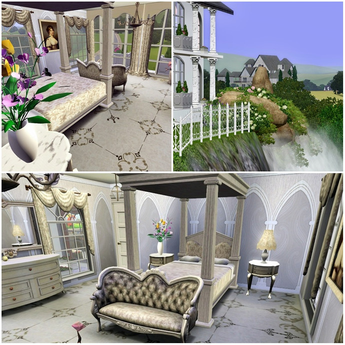 This is house is perfect for the Sim who can't afford a full size mansion, but wants a taste of the finer things in life on a smaller scale! Every room is luxuriosly and traditionally appointed mostly in tasteful beiges, browns and creams. The two childrens bedrooms are truly fit for a young prince or princess, and can easily be converted into adult rooms as they grow. The grounds feature their own waterfall and pond stocked with fish, plenty of trees and flower beds and some childrens play equipment.