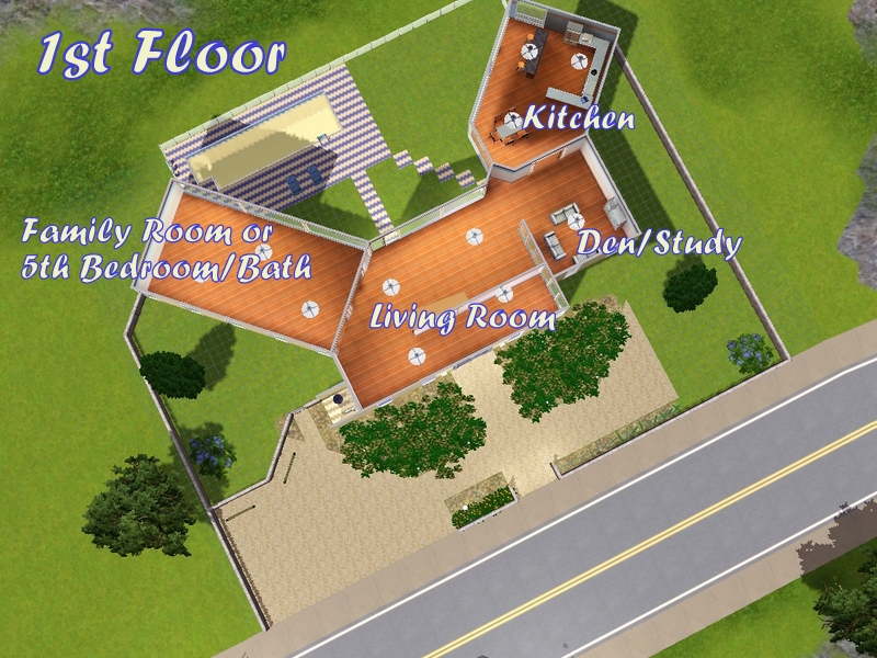 A home designed to for ocean loving Sims. Stunning view are captured by walls of windows and two open terraces. Vaulted ceilings, 4 bedrooms, 4 baths, and a pool. Left for you to furnish, open floor plan that gives you plenty to work worth. Move a few walls and make it your own!