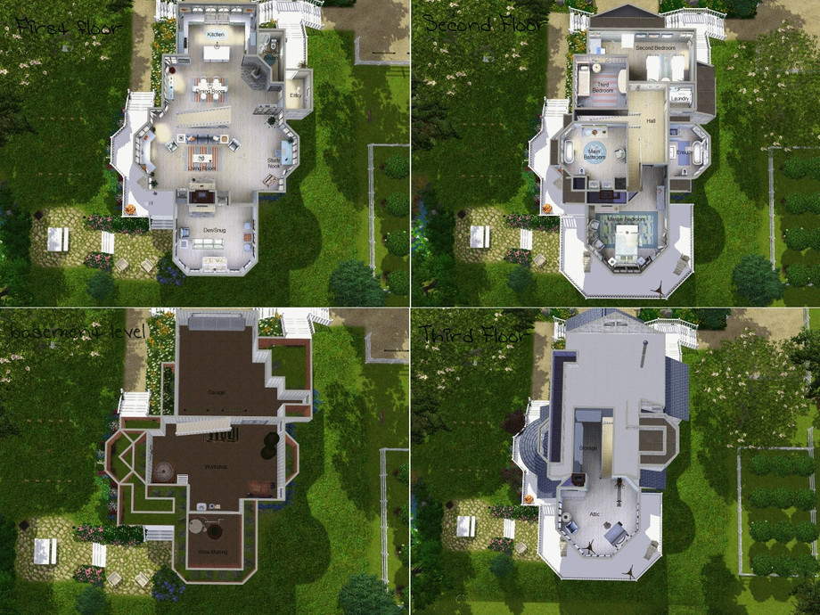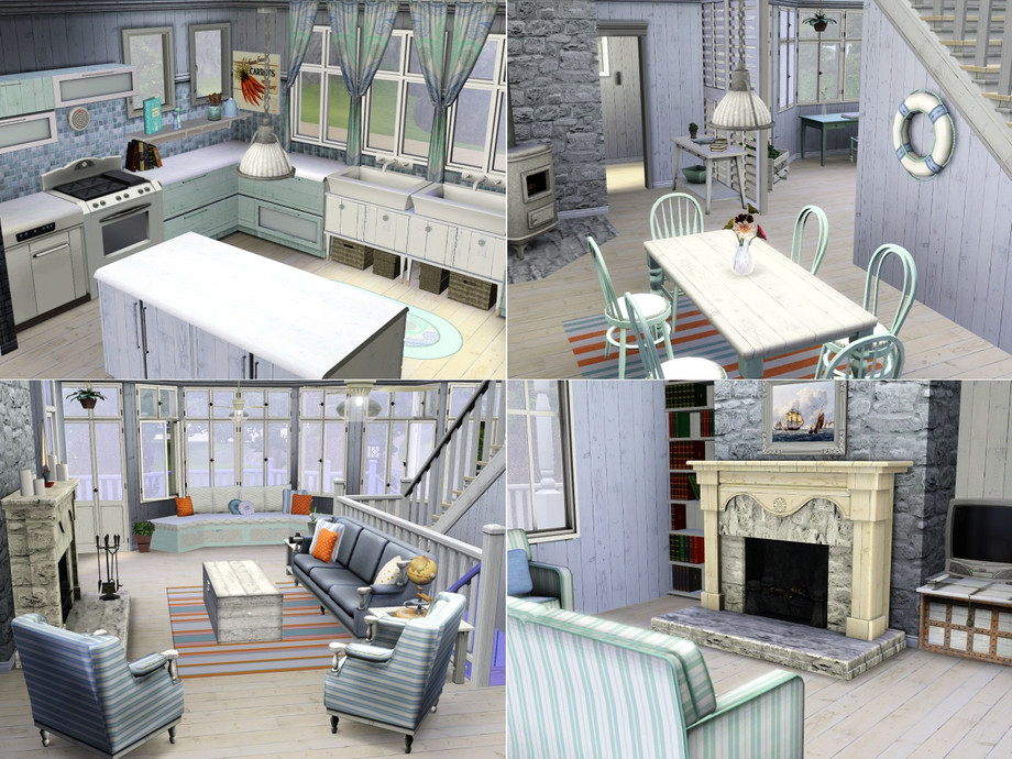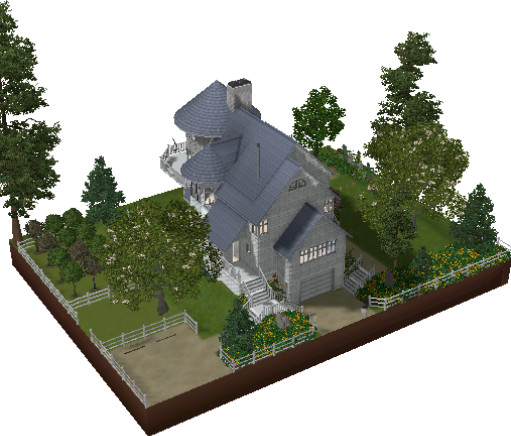 3 bedroom, 3 bath, New England shingle style home with basement garage, workshop, attic, orchard and Widow's walk. Watch the ships come in through the telescope or paint a seascape on the easel. Created by samusa06.