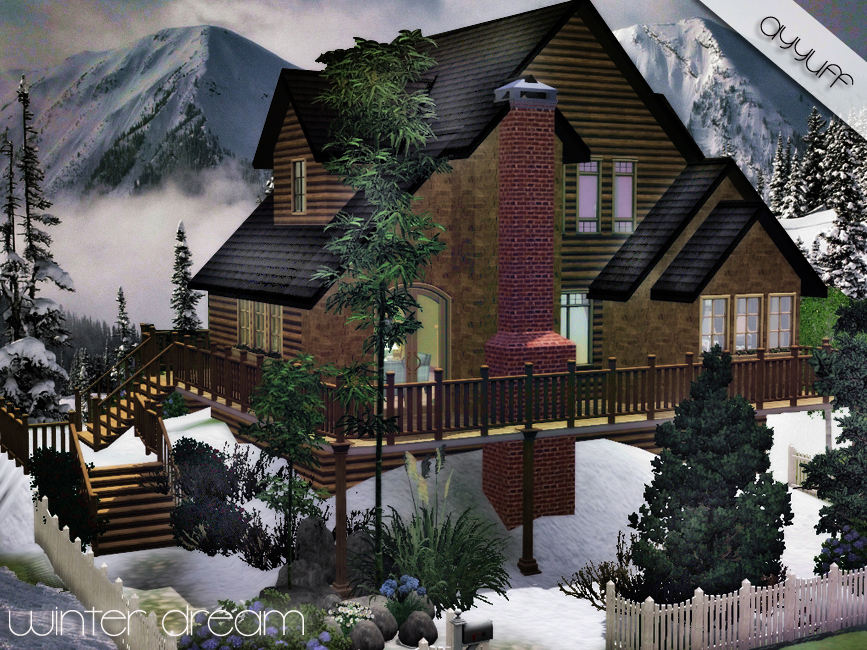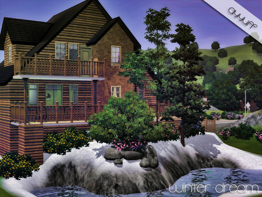 30x20 fully furnished and decorated winter house with 3 bedrooms,2 bathrooms,lake in the snowy garden..