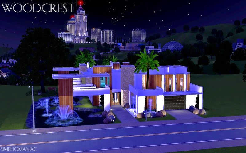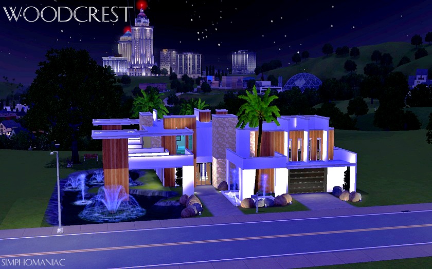 Woodcrest is a two story modern home. It has the necessities for a loving couple or a single sim. You enter through the front door into the living room. The stairs lead to the two bedrooms. To the right is the kitchen with small dining area. Going in the same direction is the garage and laundry room. Very nice pool and hot tub in the back yard. And a lake that can be filled with plenty of fish goes from front yard to back. I hope you enjoy!