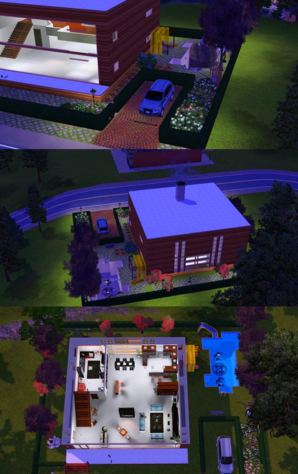 This is my very first house submitted here. The idea comes from Grand Designes/Kevin McCloud. It's a smaller house,30x30, fully furnished 2BR, 2BA, 2 stories.Some Little pretty stuff I've put in there, but overall a minimalistic, sober, useful box.