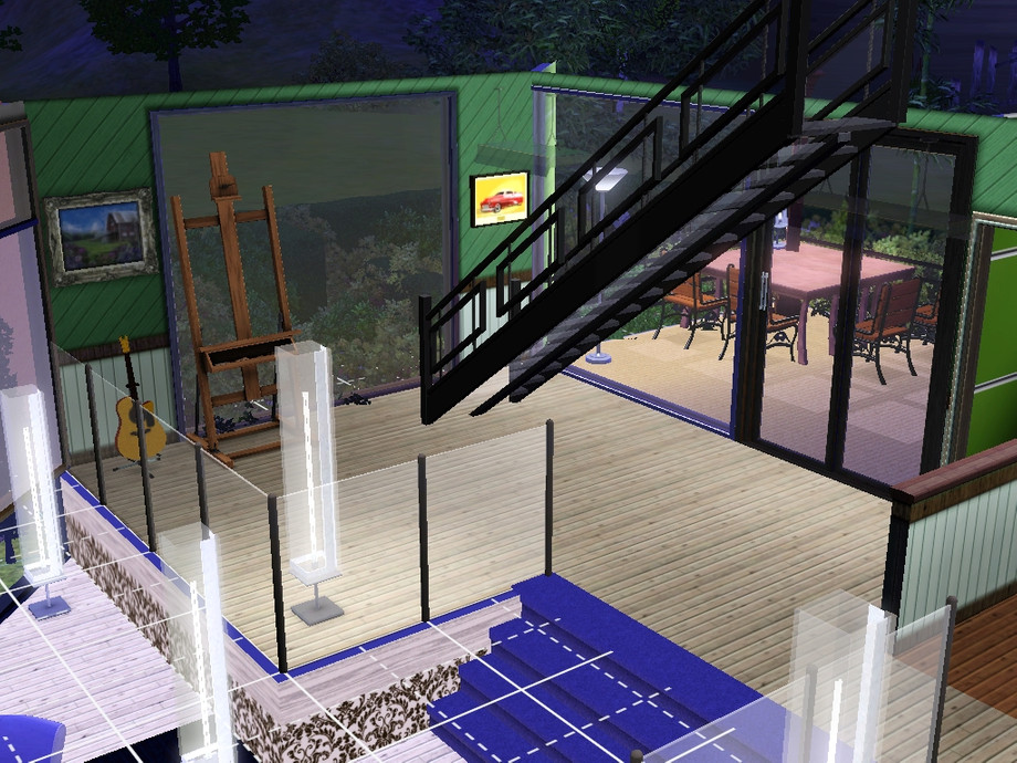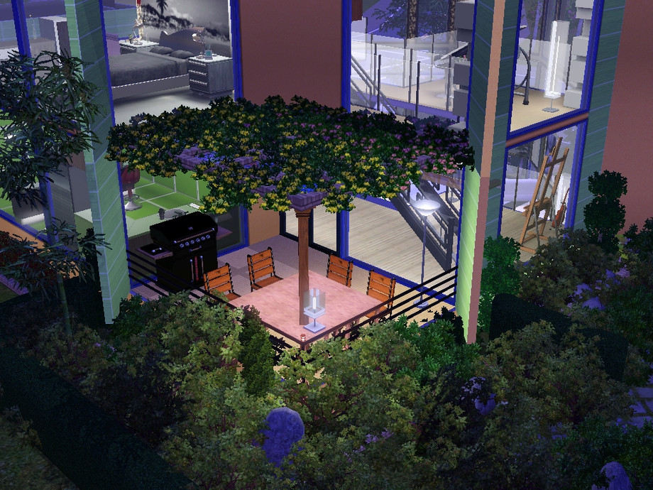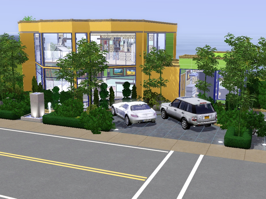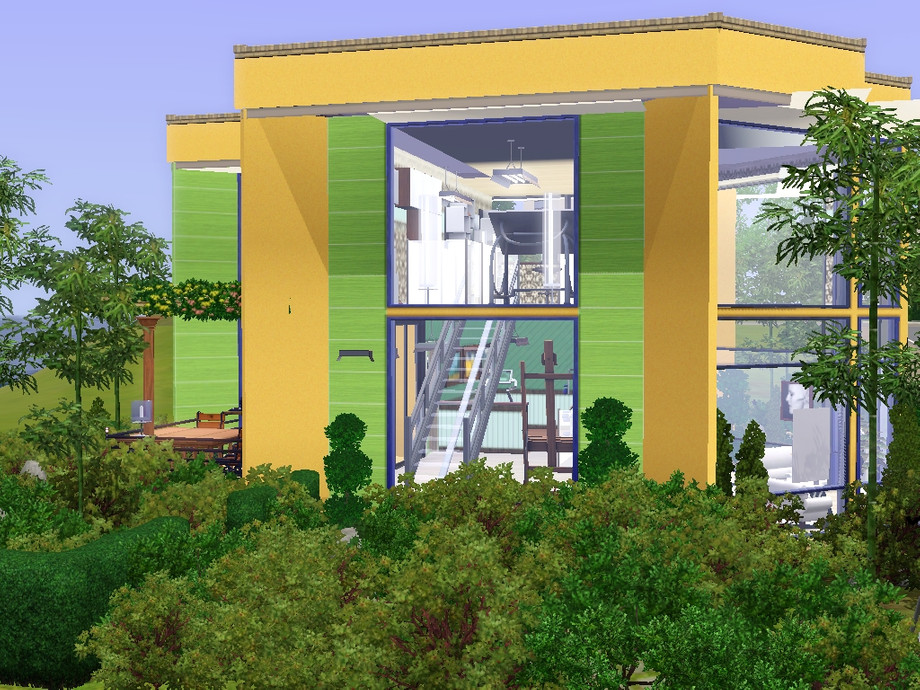 Yellow theme is a modern house built for small families. It has a grate landscape which inculdes a wonderful garden. It also has 2 bedrooms, one bathroom, an office and a big kitchen with a bar with outdoor dining.Hope you like it!For the wall storage upstairs, the white one, download it from www.simcredibledesigns.com