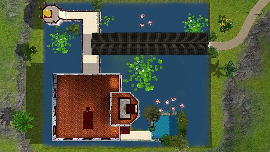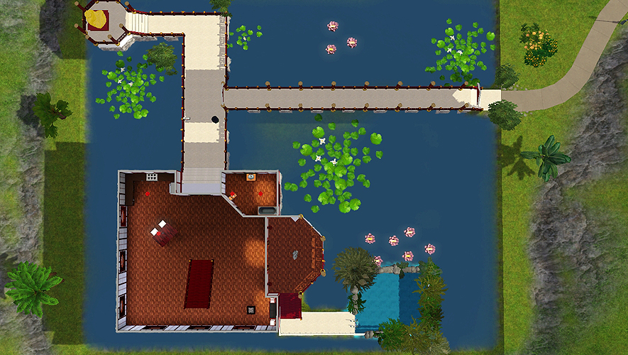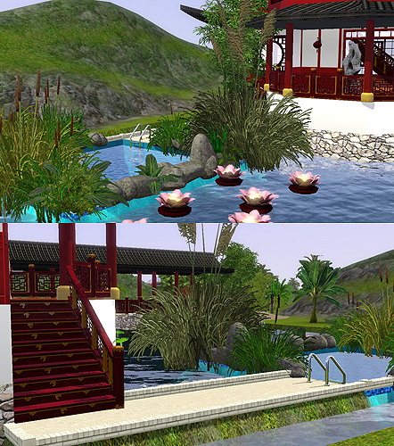 The pool-pond might have some plants from the 'Spring' outdoor set of Simpossible.