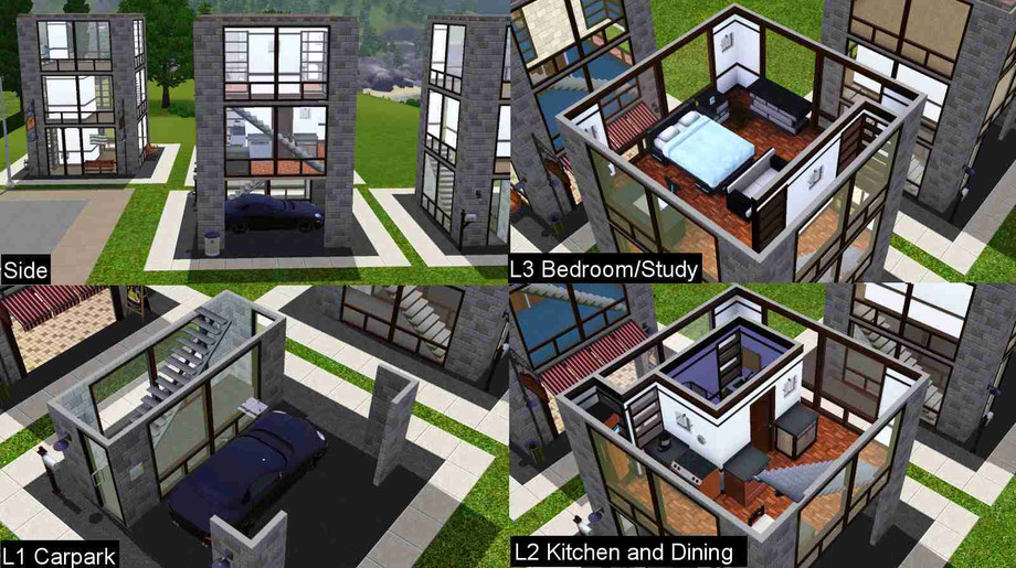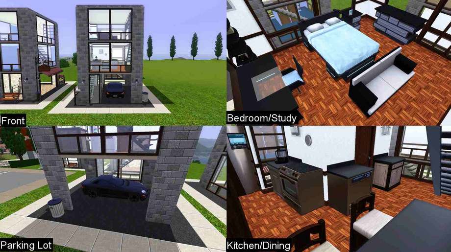 Lifestyle in a 6x6-footprint box on a 10x10 lot with a touch of Zen. There are two rooms in this home: bathroom, and everything else. This variant comes with a parking lot for the vehicle lover.