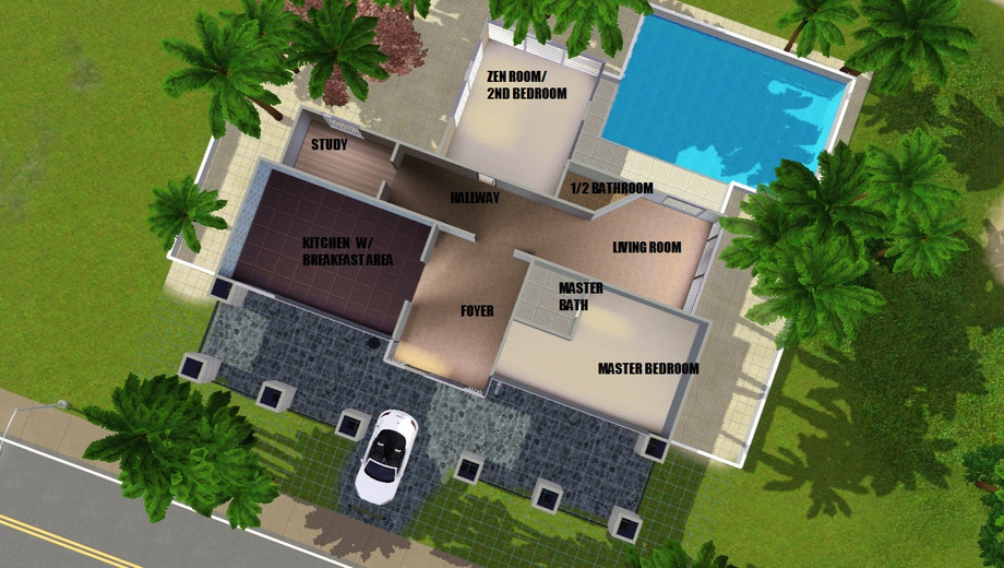 This 1 bedroom/ 2 bedroom home is a peaceful retreat away from the busy life of sunset valley. The home was originally designed with one bedroom in mind and the large room in the back, to be a game room or zen room. The home comes unfurnished and has 1 1/2 bathrooms. lovely peaceful pool, and front porch and space for one car.- JGazay Original