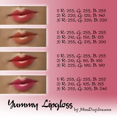 Yummy Lipgloss is a tasty [yummy! ;)] and non-sticky lipgloss. Your female sims will love it 'cause they can wear it whenever they like to.