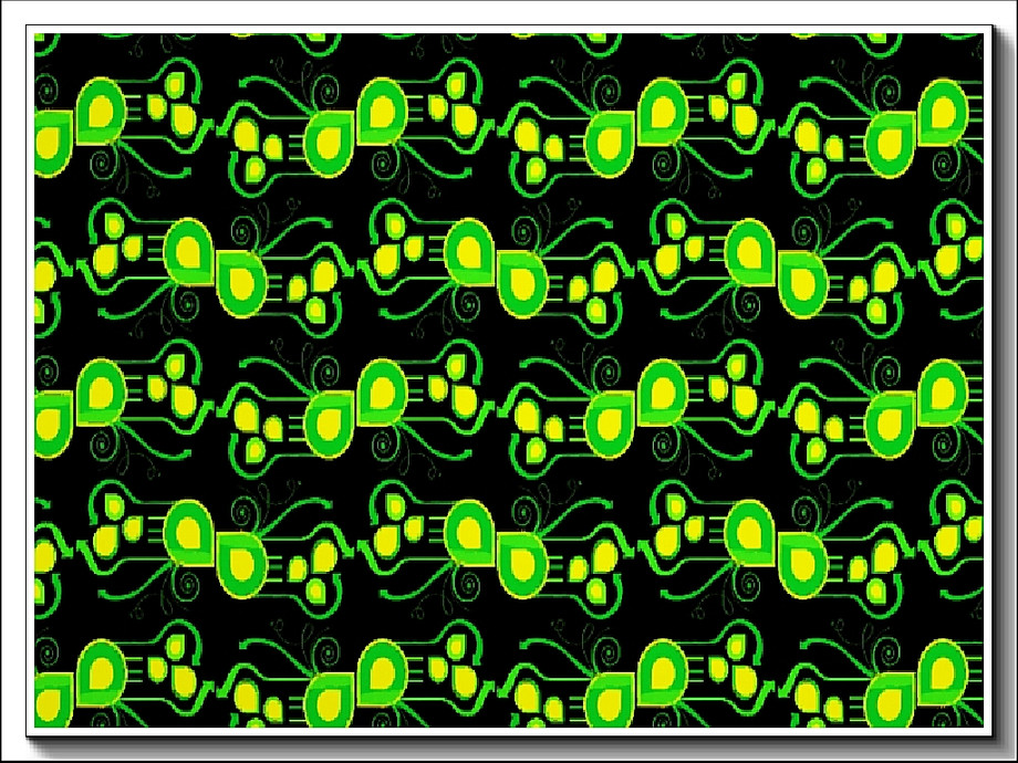 Abstract pattern: directional arrows and various shapes in yellow and green on black