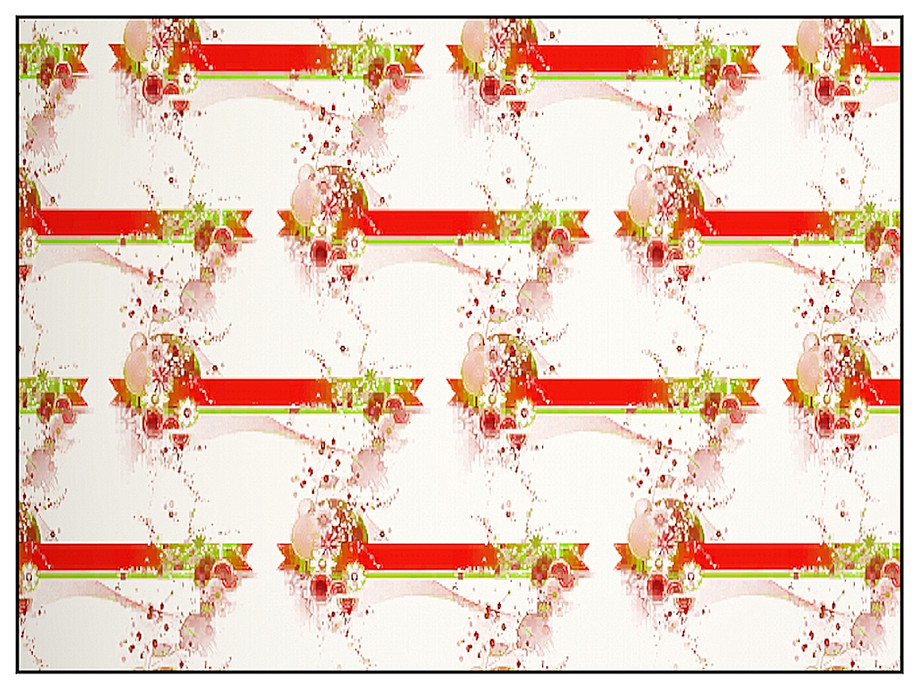 Abstract pattern: red and green banner with cascading floral elements on white.