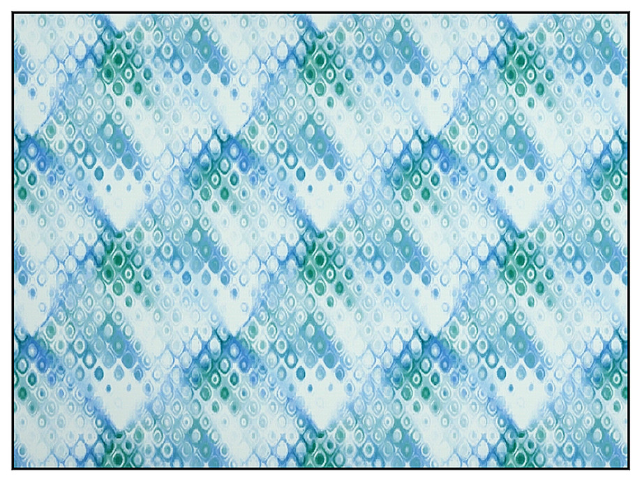 Abstract pattern : blurred diamond scale design in shades of blue and green on palest blue.