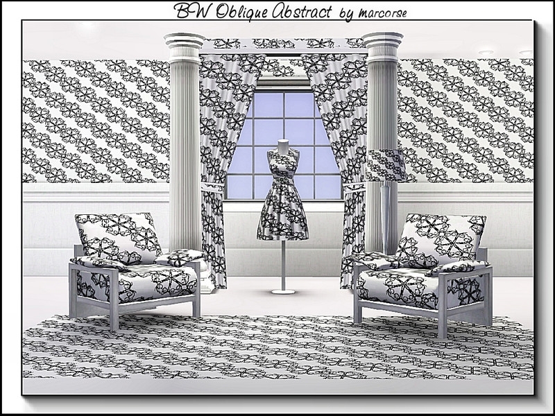 Abstract pattern: black and white abstract floral motif in an oblique design
