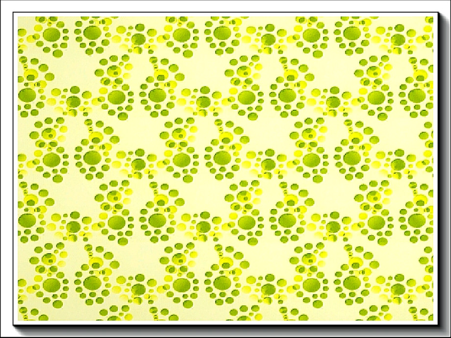 Abstract pattern: vari-sized dots in citrusy shades of yellow and green.