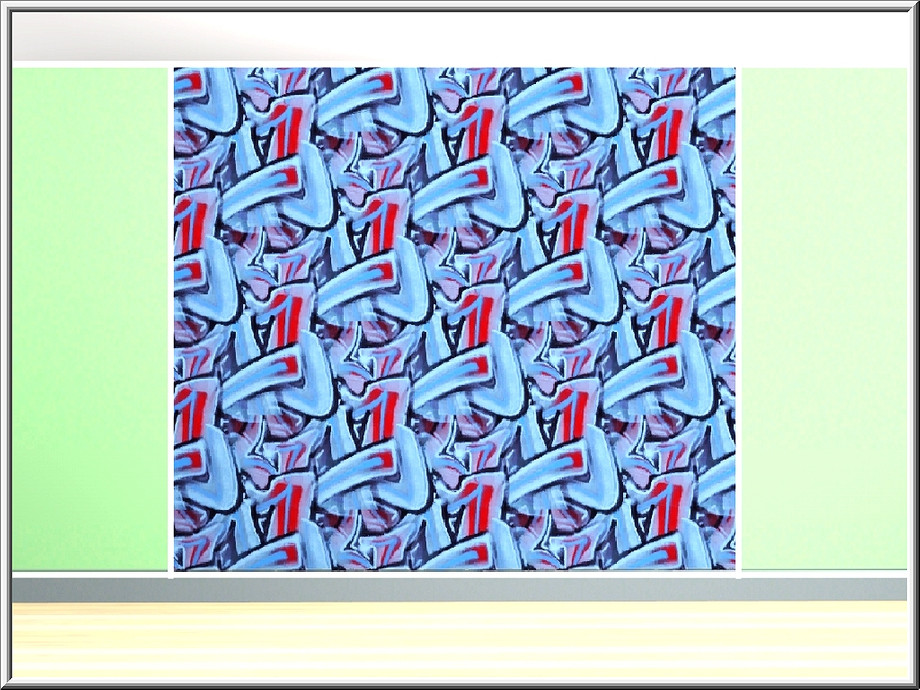 Abstract pattern: street graffiti in red and shades of blue.