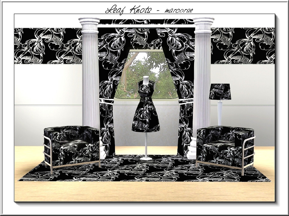 Sims 3 — Leaf Knots_marcorse by marcorse — Abstract pattern: black and white design of knotted leaves