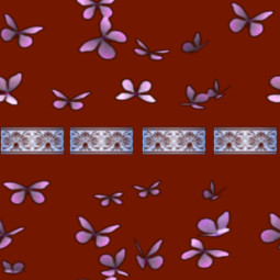 Figured brocade ribbon laced through butterfly printed fabric for this stylish pattern. Recolourable 2 - the background is not.