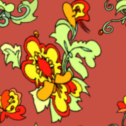 Okay . . so there isn't a rooster in the pattern . . not really . . but I swear I saw one, even though the actual pattern is made up of bright orange and yellow, 'recycled' paisley motifs.