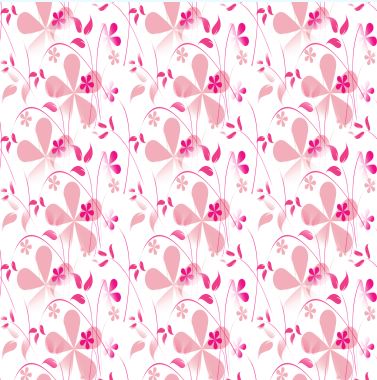Leafy stalks and 5-petal daisies in pink and fuchsia decorate this abstract, allover repeat pattern.