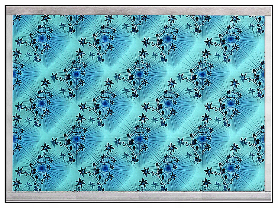 Abstract pattern: sprays of dark liliies backlit on aqua