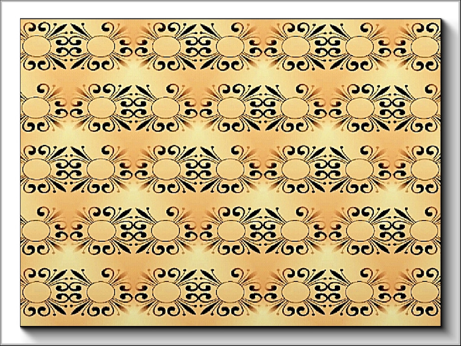 Abstract pattern: stylised floral spider shapes in orange/brown and yellow