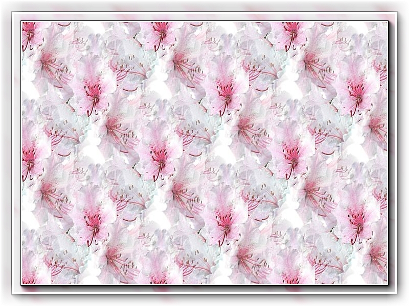 An allover repeat pattern - in pink and white - of the heart of a head of rhododendron .