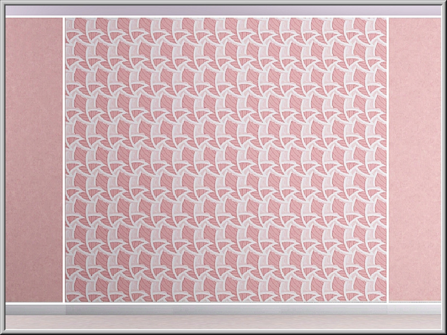 Geometric pattern: pink and white, stylised waves and fins in a geometric design.
