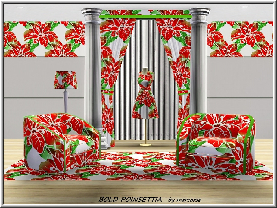Fabric pattern: big and bold, red poinsettias in a cross hatch design.