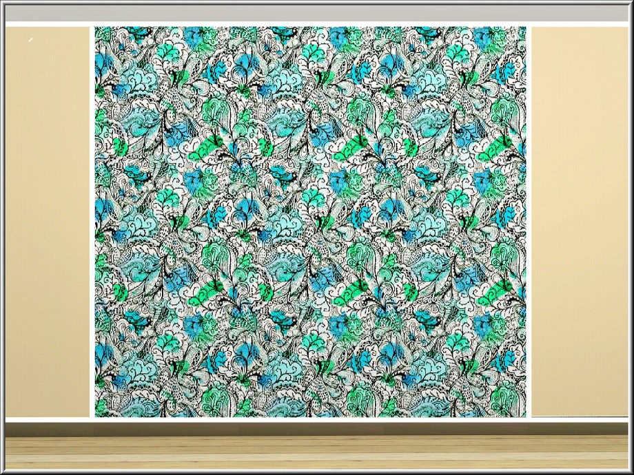 Fabric pattern intense paisley-look design in greens and blue. 1 recolour