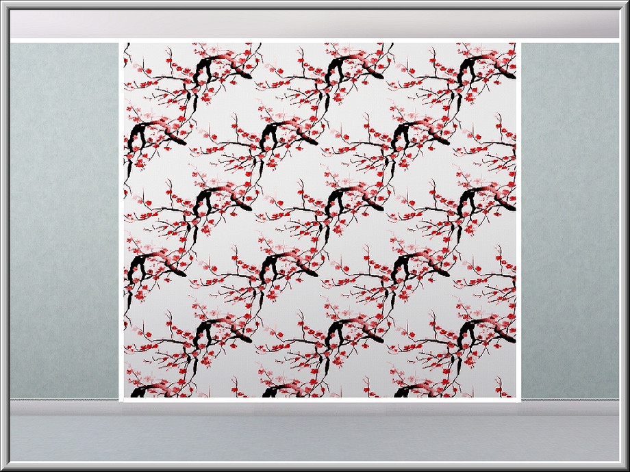 Fabric pattern: branch with red blossom