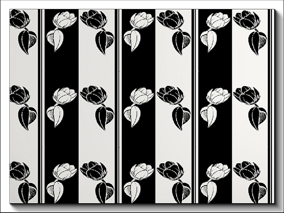 Fabric pattern: 'positive' and 'negative' tulips in black and white vertical