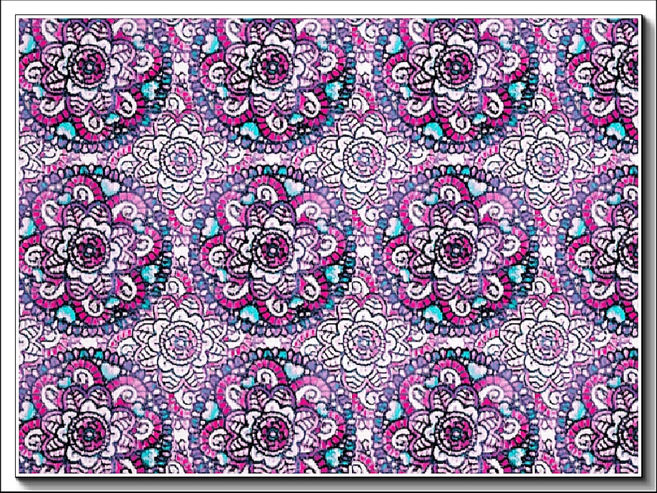 Fabric pattern: floral design with a circular motif in pink and blue