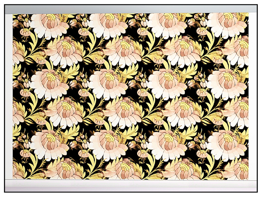 Fabric pattern: Victorian style floral wallpaper in pink, brown and yellow